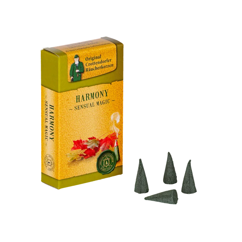 Die Crottendorfer Räucherkerzen Harmony verbinden holzige, würzige und fruchtige Duftnoten zu einer besonders ausgewogenen Komposition.